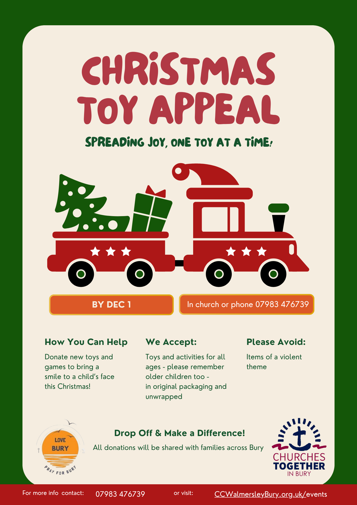 Please e-mail all.ccwalmersleybury@outlook.com if you can offer help