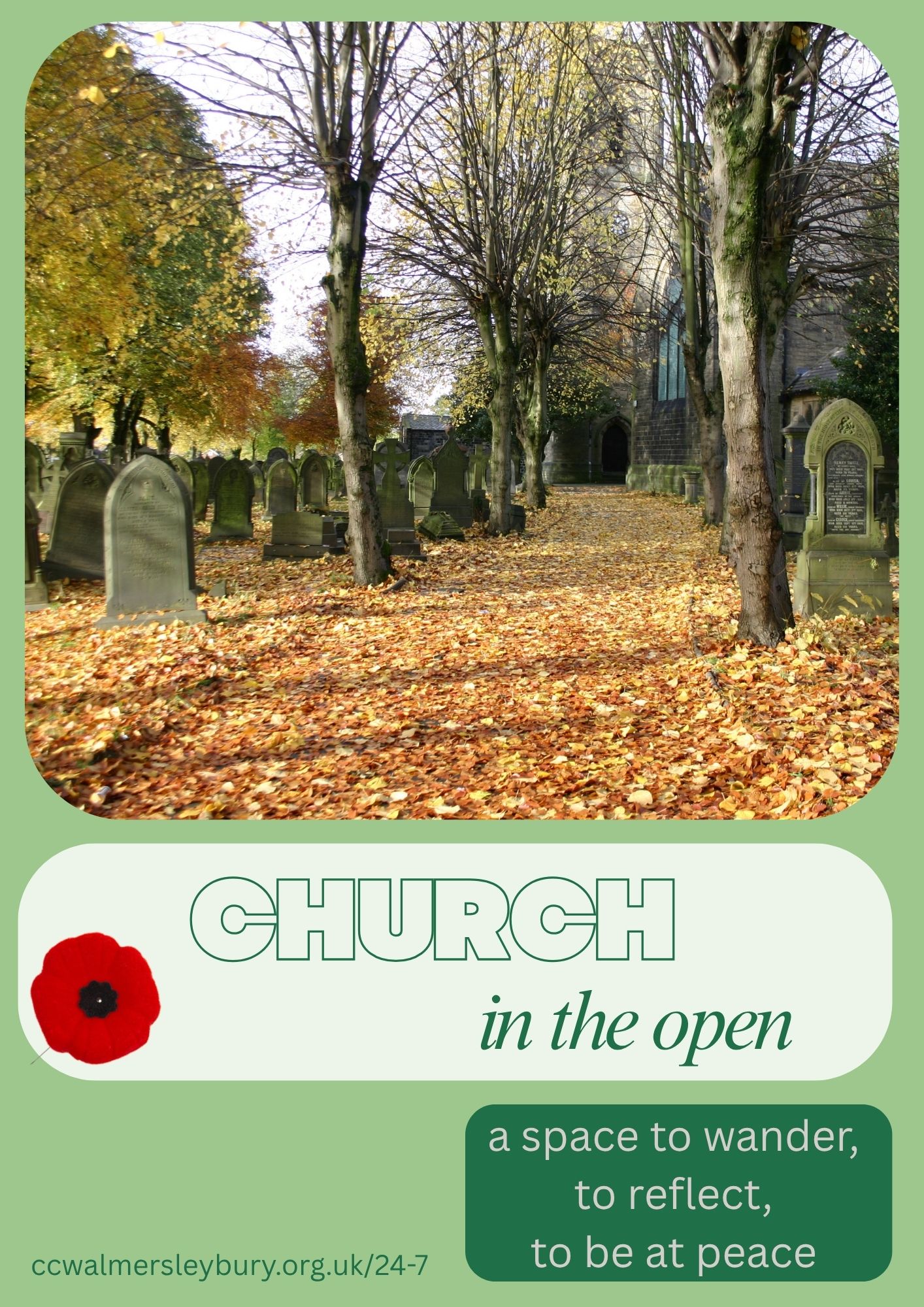 Or maybe you would like to gather in the churchyard, which includes several War Graves, at 11am on REMEMBRANCE DAY and observ two minutes silence.